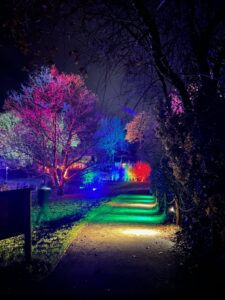 For Dartmoor Zoo, it was the second year we were working on Zooluminate, so our focus was on enhancing the visitor experience, carefully considering visitor flow, popular areas, and animal-friendly lighting colours. Lighting Dartmoor Zoo is an interesting challenge, requiring consideration not only for the visitor experience but also for the animals—choosing colours that don’t disturb them and ensuring minimal disruption to their daily routine”.